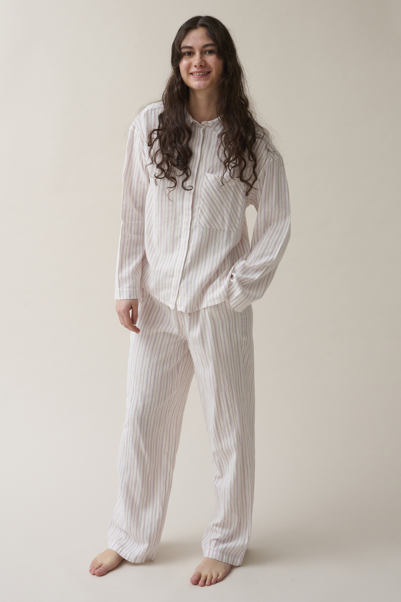 Dorélit's pyjamas are cut from soft flannel cotton that is decorated with fine stripes. Designed in a relaxed silhouette, the shirt has a chest pocket and the pants are fitted with an elasticated waistband for your comfort