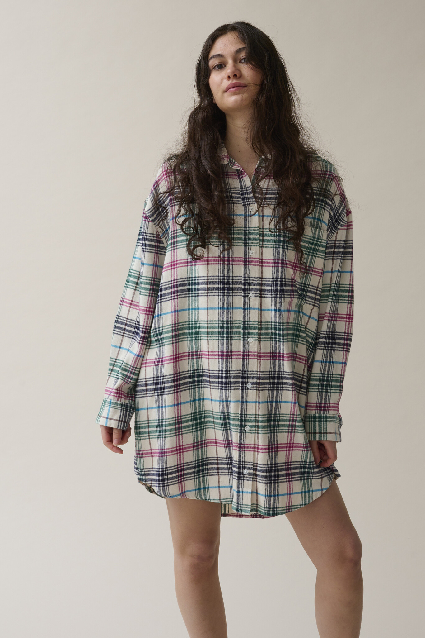 The Honda night dress can also be worn as a shirt during the day. This dress/shirt is made from soft breathable brushed cotton. It has a loose fit and buttons down to the bottom. Relax in style and comfort.