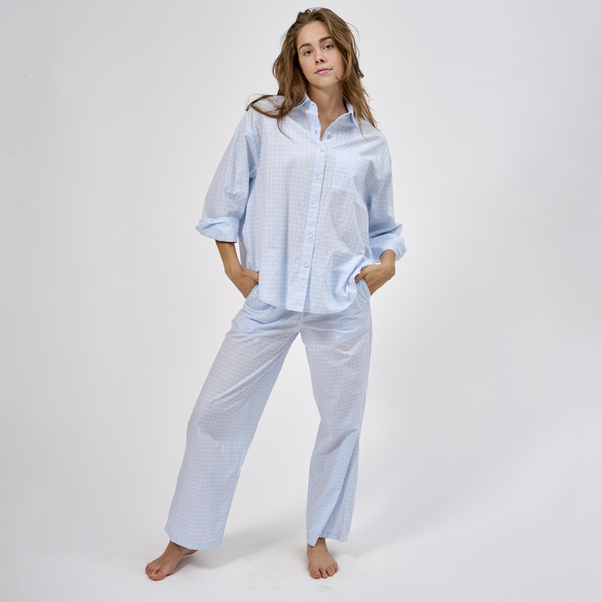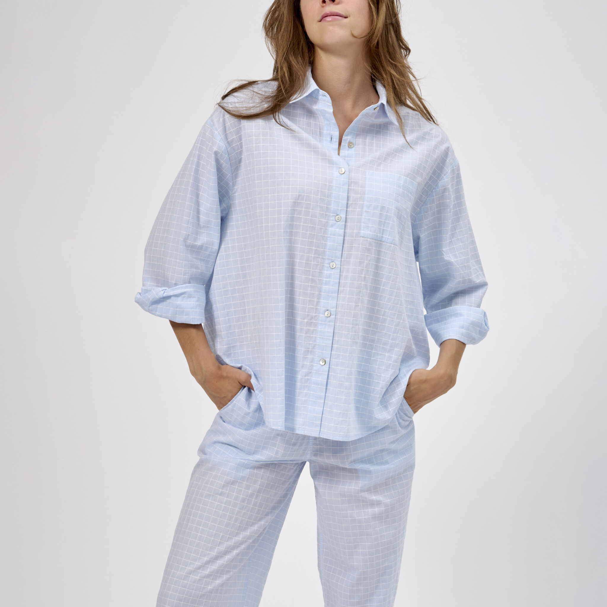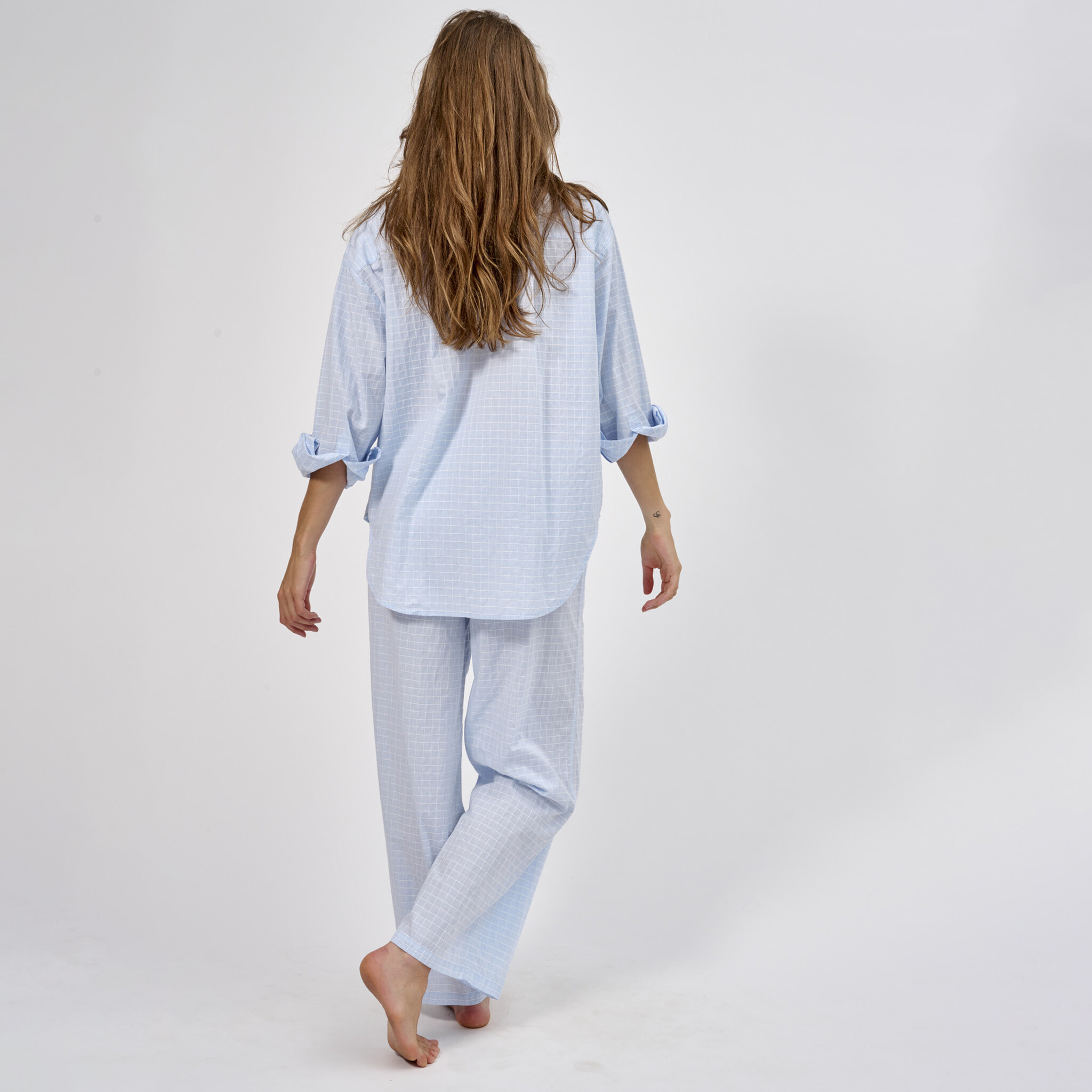 Stylish and oh so comfortable. Dorélit's pyjama set is everything you need for a relaxing evening in. The long-sleeve ovesized shirt fastens with mother-of-pearl buttons, while the pants are fitted with a drawstring waistband.