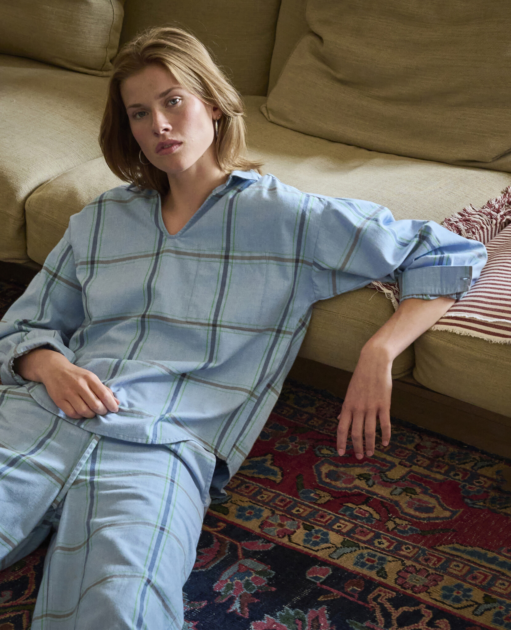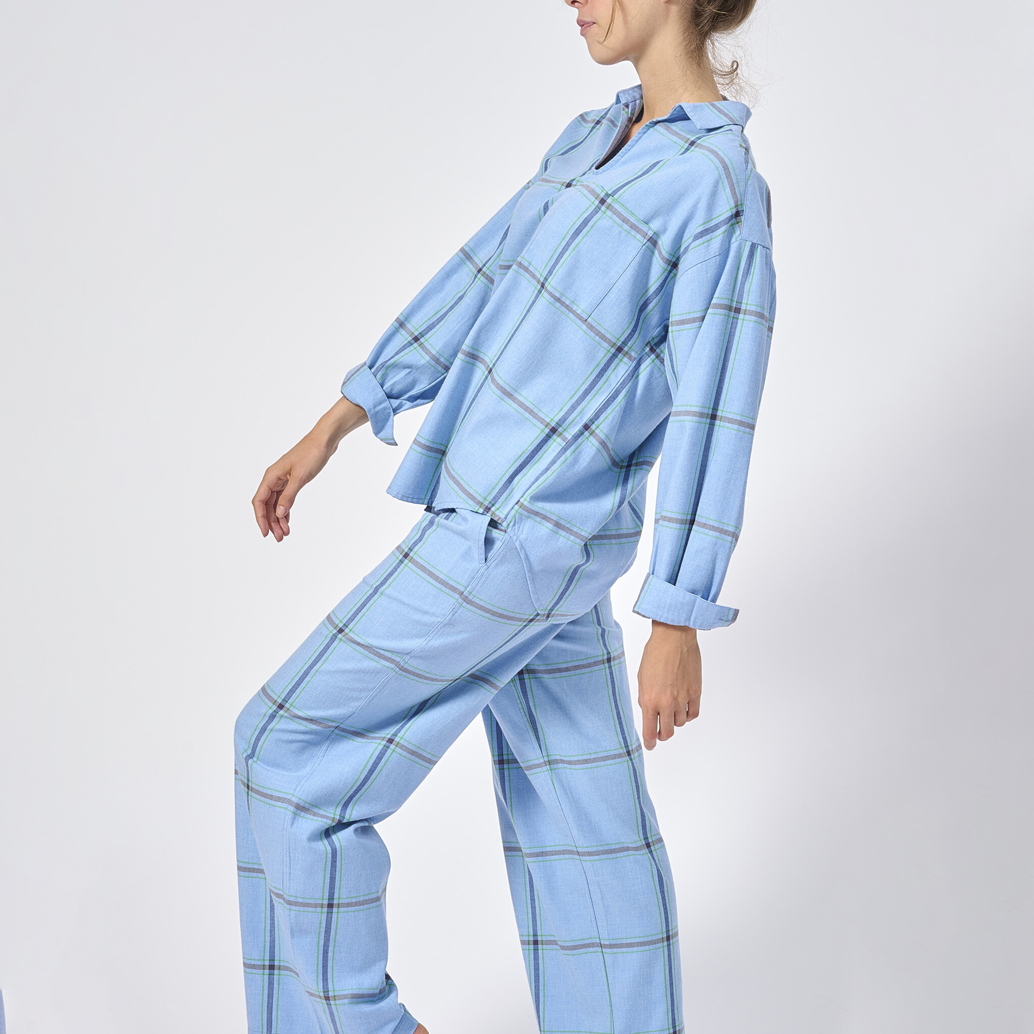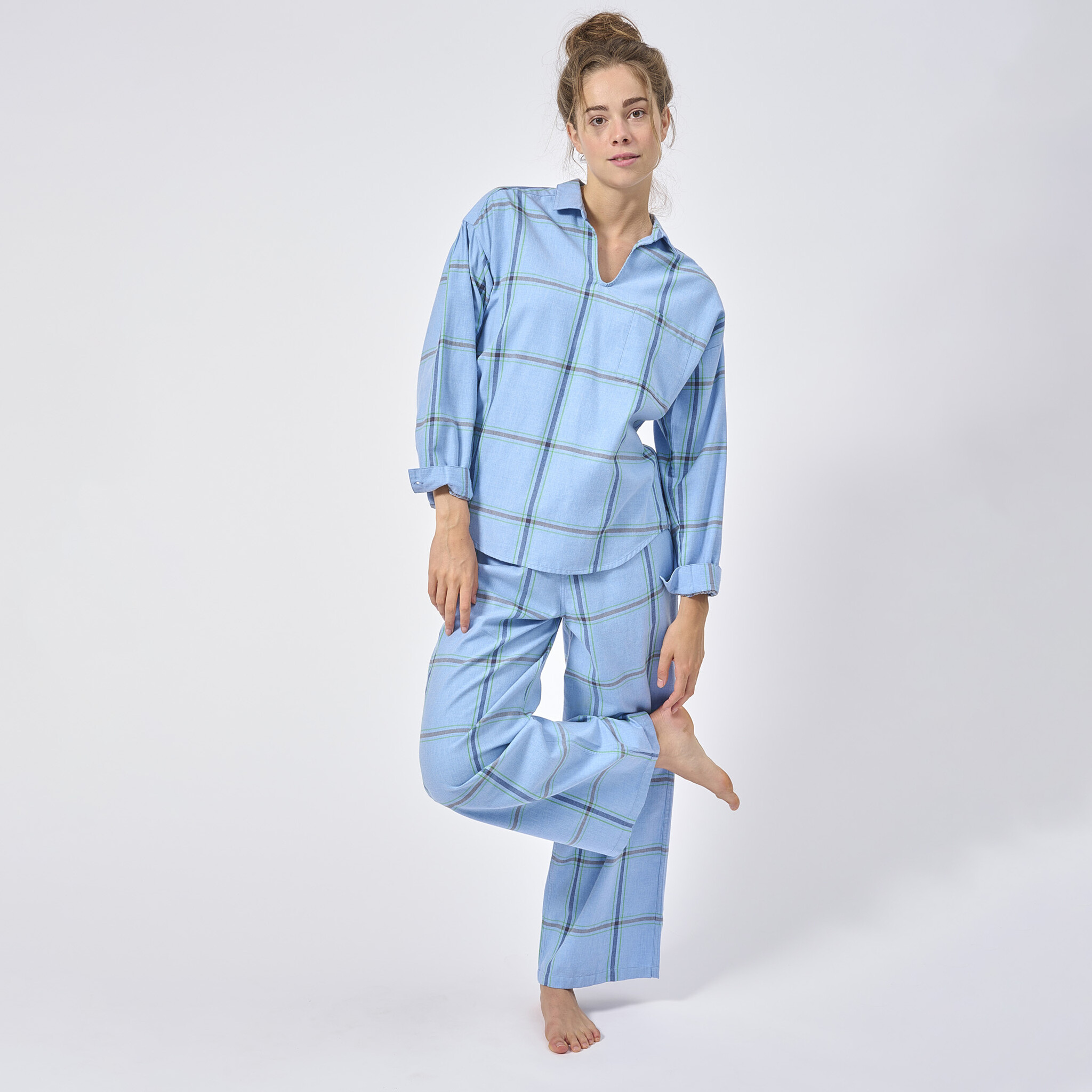 Het mooie van de pyjama's van Dorélit is dat ze zo veelzijdig zijn, draag de jouwe om de hele dag in te loungen of combineer de stuks met gewone kleding om te gaan brunchen. Deze set is gemaakt van zeer zacht en comfortabel flanellen katoen.