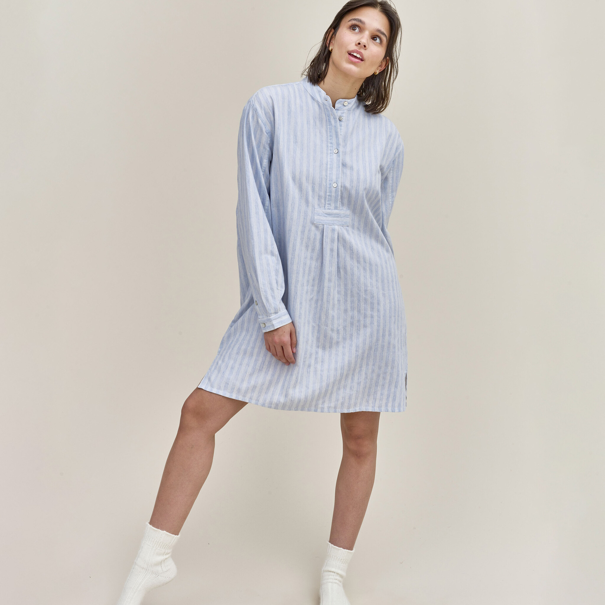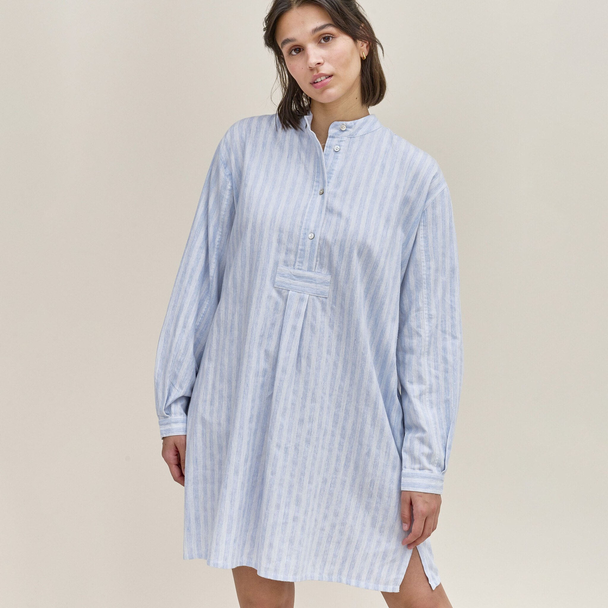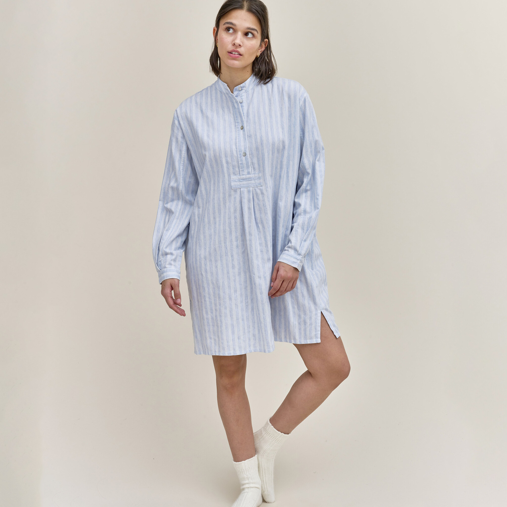 Dit mooie, halflange nachthemd van Dorélit is zeer elegant en gemaakt van zacht, lichtgewicht katoenflanel. Een veelzijdig kleed met relaxte pasvorm en leuke details, lengte tot boven de knie.