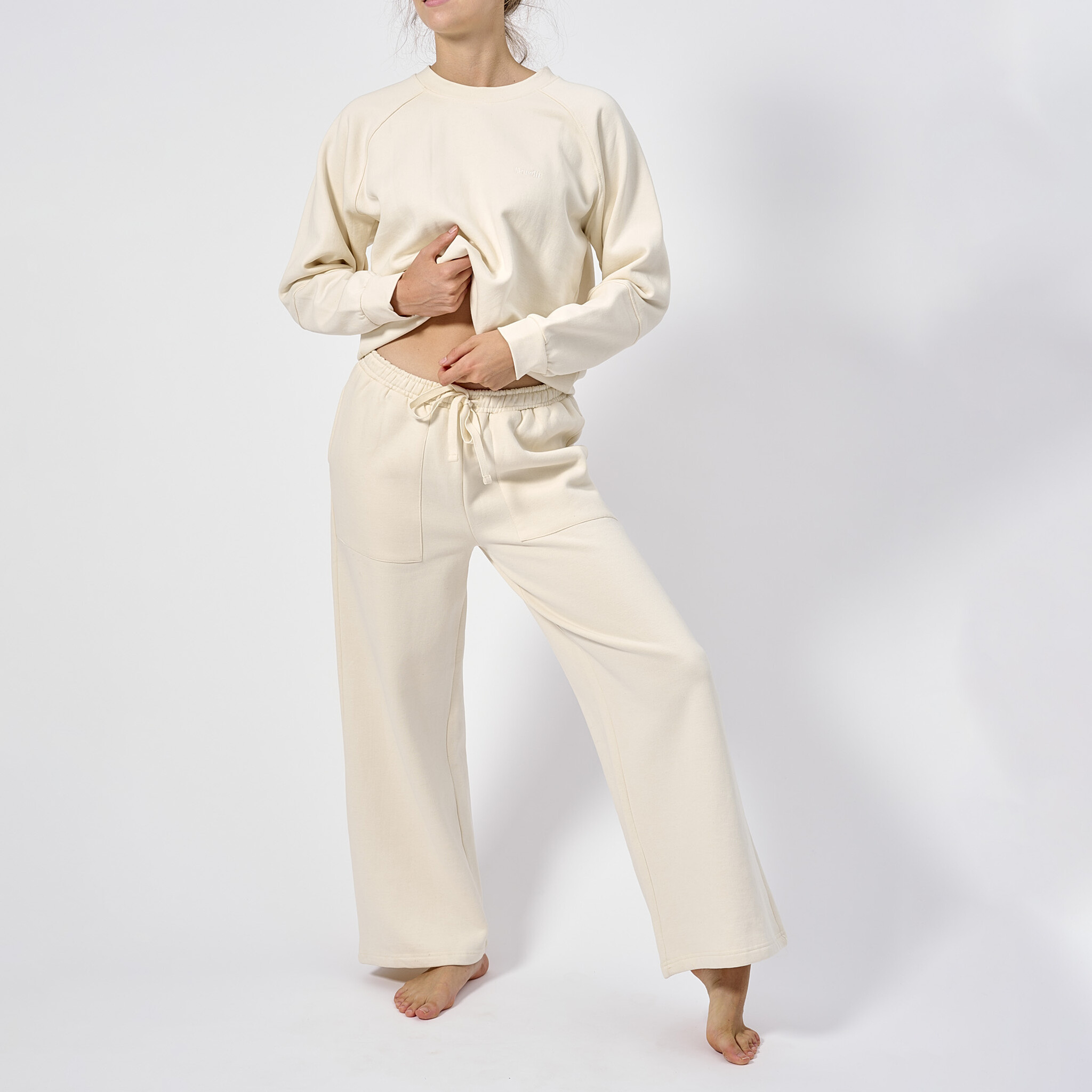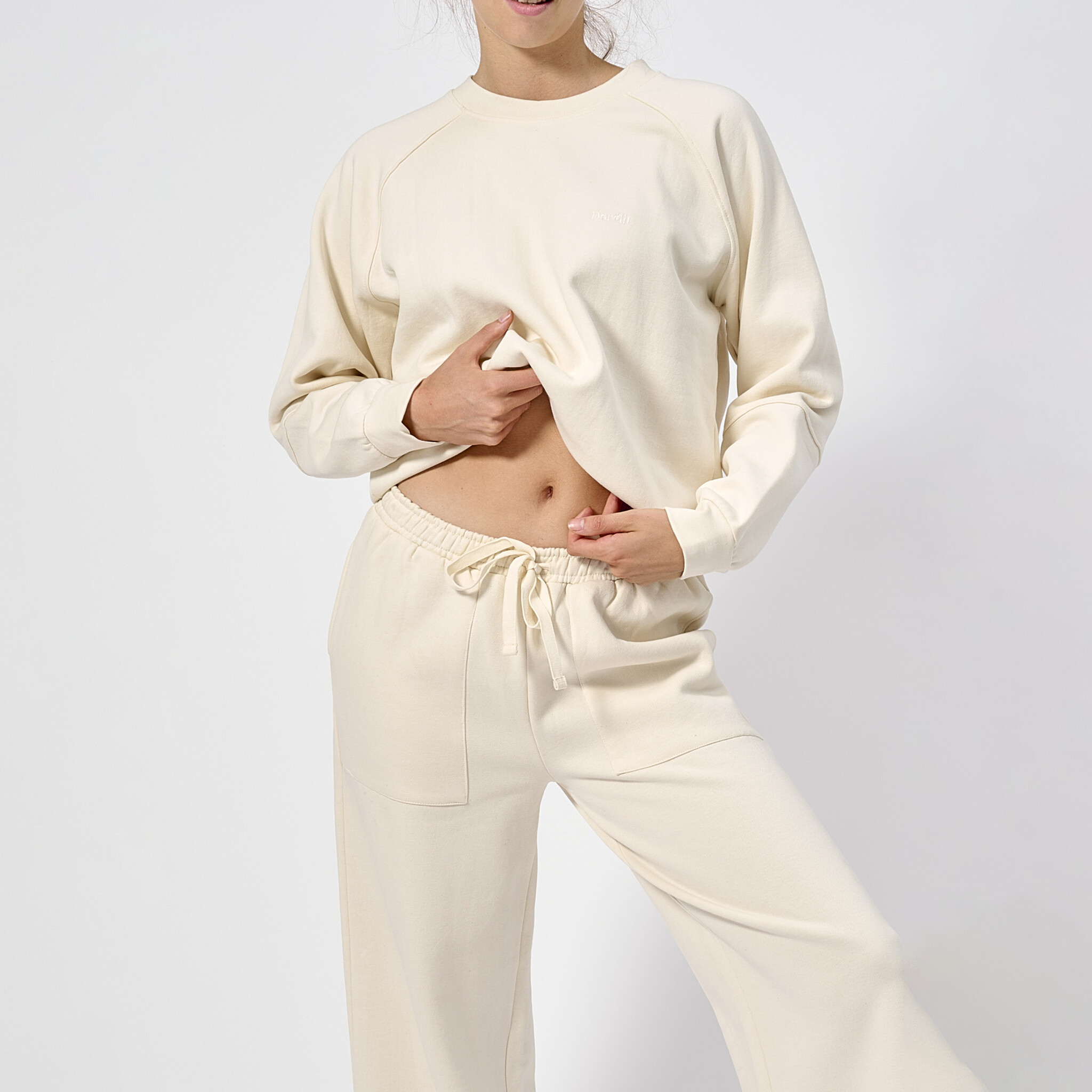 Deze homewear pyjama van zachte sweatshirt stof bestaat uit en lange broek met elastische tailleband, gecombineerd met een oversized sweater met lange mouwen gedecoreerd met een geborduurd DorŽlit logo.