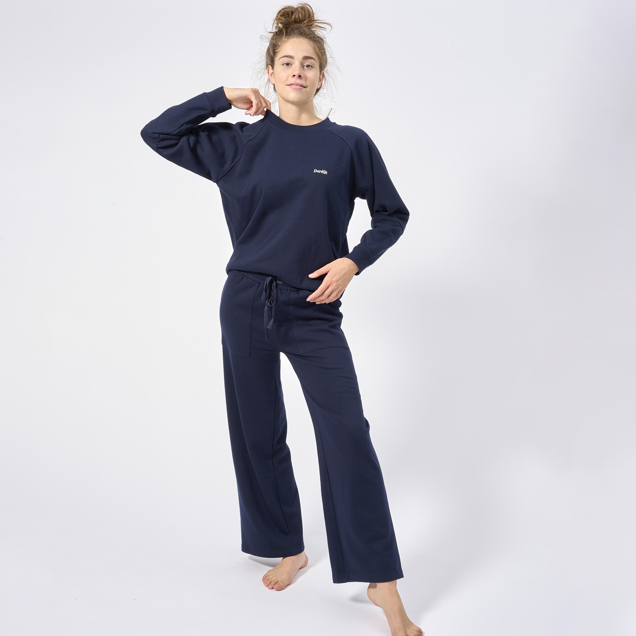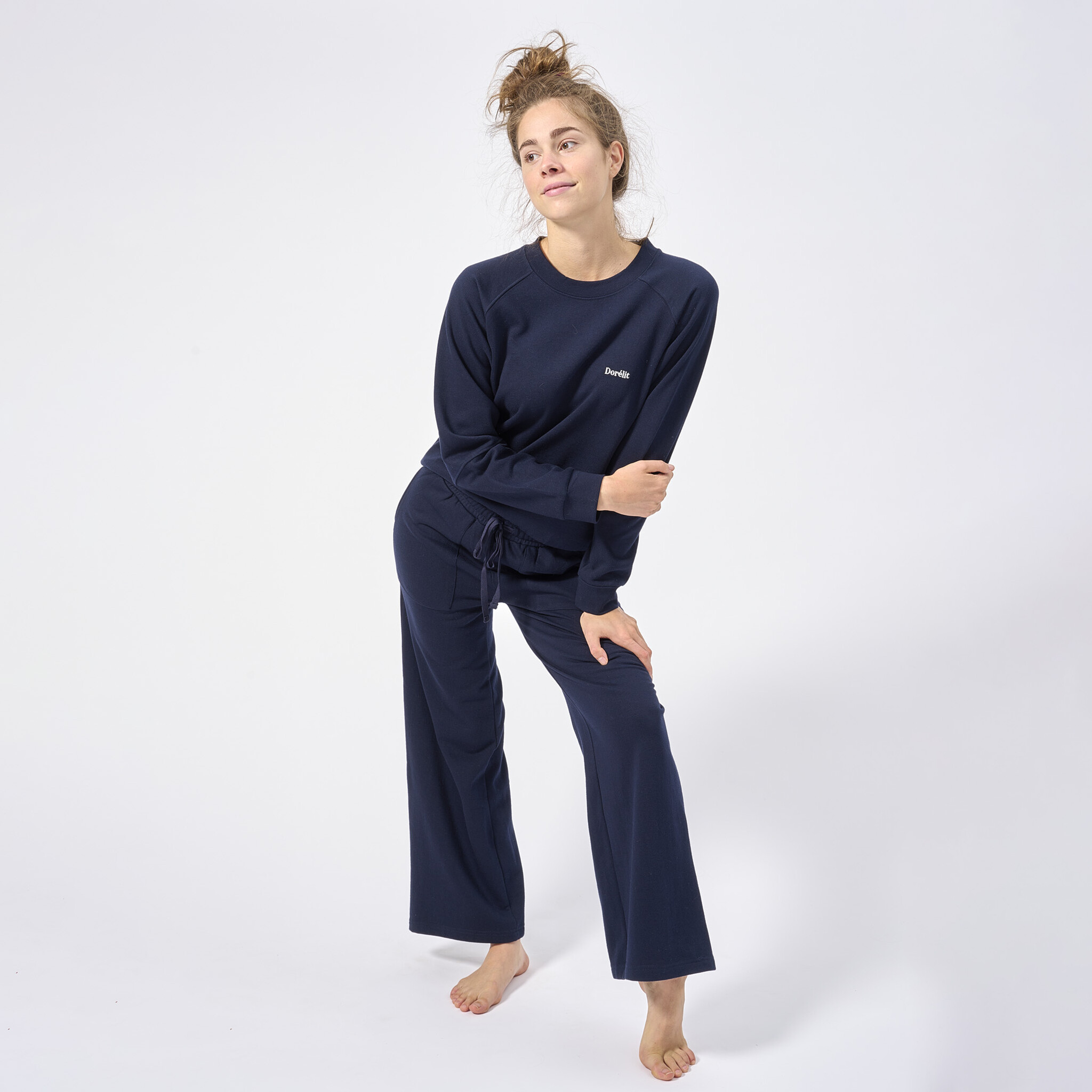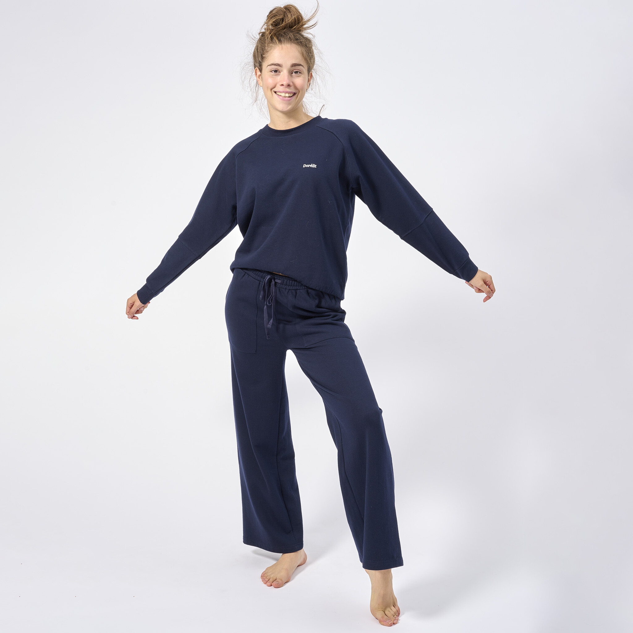 Deze homewear pyjama van zachte sweatshirt stof bestaat uit en lange broek met elastische tailleband, gecombineerd met een oversized sweater met lange mouwen gedecoreerd met een geborduurd DorŽlit logo.